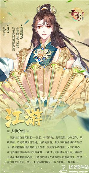 出身青鸾世家江家,曾经的他,走马凰都,少年意气,琴棋书画、诗词歌赋无所不通。这样的江游,和天下所有赤诚的年轻学子一样,怀抱着匡国济时的远大理想。然而家族的没落、父亲的野心,注定要将他推向万劫不复的深渊……和凤兮之间错误的开始,种种误会而日渐难解的心结,让仇恨的种子在江游心底渐渐滋生。曾经意气风发的少年,终有一日,变得阴冷疯狂,为了报复,不择手段……