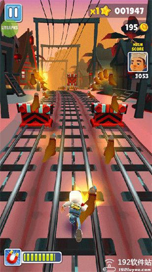 8、当你在3条火车轨道上接金币时,最后一辆火车速度是最快的。