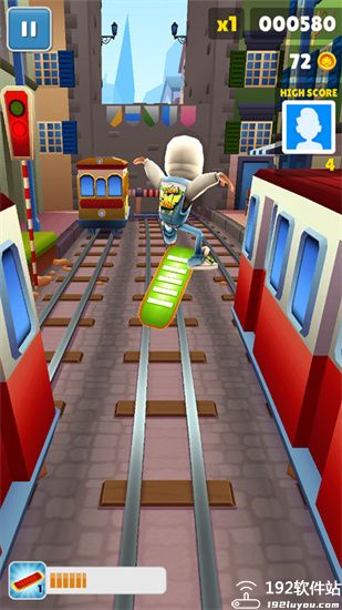 4、道具合理利用:玩家们在游戏中不仅要收集金币,扑面而来的火车也会让你累够呛,在这个过程中你可以使用道具,加速道具能够让你快速前进,使用滑板可以帮助你多出一条生命,点击屏幕两次可以使用道具。