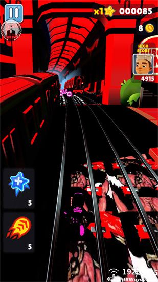 跑酷游戏,本次带来的是有南枫魔改的专属版本,在这里场景画面有着翻天覆地的变化,将原有的城市风格改成了暗红场景画面,还有人物形象也变的独具特色,使玩家在闯关的同时感受多全新的玩法元素。不过游戏也保留基础玩法和操作,同样是收集地图中的金币和躲避障碍物为玩法核心,在面临险境时可以使用游戏道具帮助你化险为夷,惊心动魄的跑酷玩法让玩家们热血沸腾。随着玩家在地铁跑酷游戏中跑的距离越远挑战难度就会逐步提升,这时我们就需要想方设法的来避免这些障碍和难题,不仅要反应迅速更要把握好时机,否则极有可能被淘汰出局,极具挑战的玩法模式有信心的朋友欢迎来游戏内闯关。