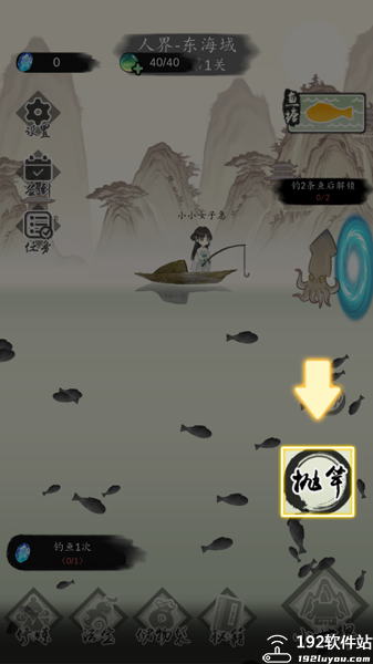 3、点击右下角的抛竿;