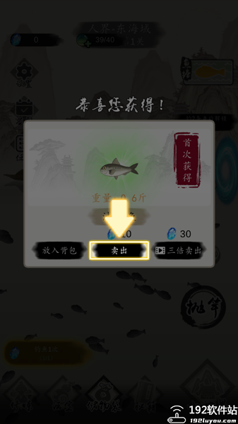 4、成功将鱼儿钓上来了之后可以将其卖出。