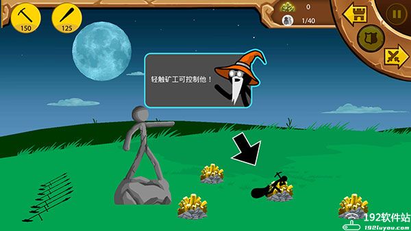1、进入游戏后首先需要召唤矿工帮助你采集资源