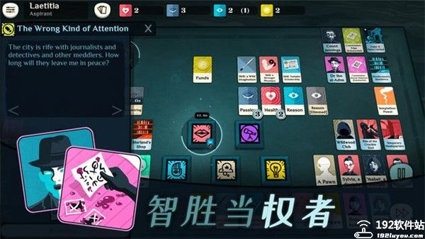 2、用智力战胜敌手,调查人员以及越来越多疑的当局。你自己被扭转的欲望很可能会迫使你做出令人憎恶的行为,但你的事业绝对不能被阻止。