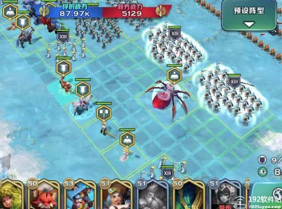 2、这个是越万神开城阵容,左边空位龟右边空位蜘蛛,记得艾莲娜用好撤退技能很容易集火。基本跟普通开城一样,但是这个阵容因为没车打的墙皮很少,但是牧师的奶却能帮忙把这个血量问题补回来。