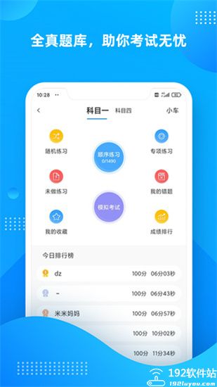 3、有科目一和科目四的题库可以切换练习,还有错题、收藏、排行功能