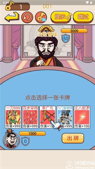 4、三国,有点类似于三国杀的玩法,双方各获得相应的卡牌,使用卡牌上的属性击败对方。