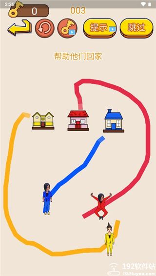 5、画线,你需要画出路程,帮助图中的人物回到自己的家中。