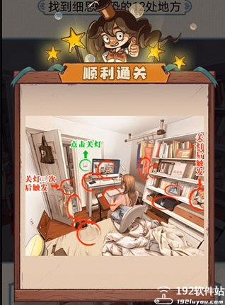而且有的位置需关灯三次才能发现问题,所以大家过关的时候,注意这两个细节,如果这两个细节到位了,基本这关就能通过了。