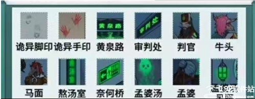 答案:诡异脚印、诡异手印、黄泉路、审判处、判官、牛头、马面、熬汤室、奈何桥、孟婆汤、孟婆、孟婆汤吊瓶。