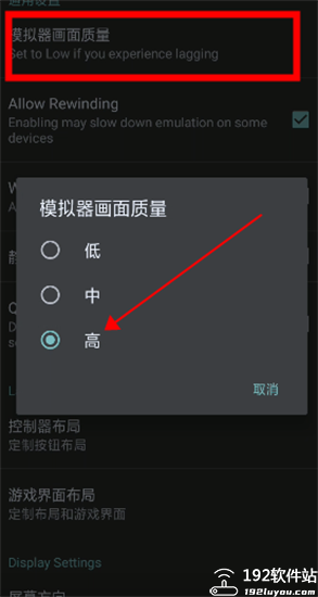 3、这里能调整模拟器画质,这是当前使用的画面质量