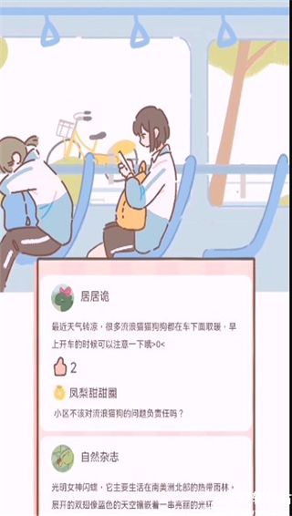 3、在公交车上刷着朋友圈,看到因为最近气温转凉,很多的流浪猫狗无处可去。