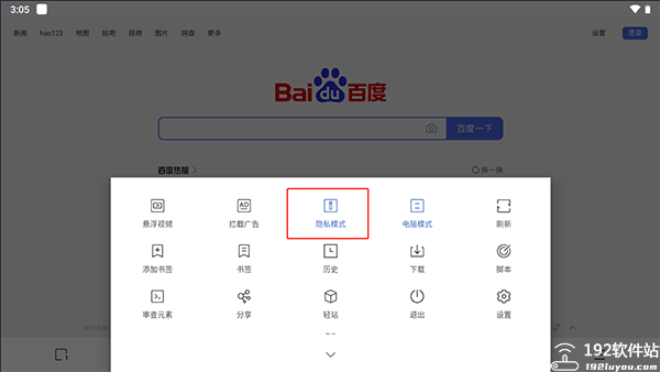 4、想要放置存留浏览记录,开启隐私无痕模式。