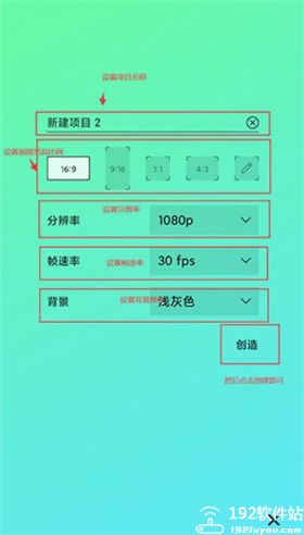 2、这是创建项目的界面,可以选择画面比列,分辨率、帧率等,根据需要选择;