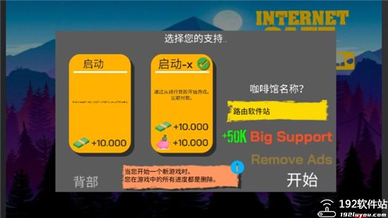 4、设置完成后,玩家需要选择你的启动资金,以及给网吧取一个名字。