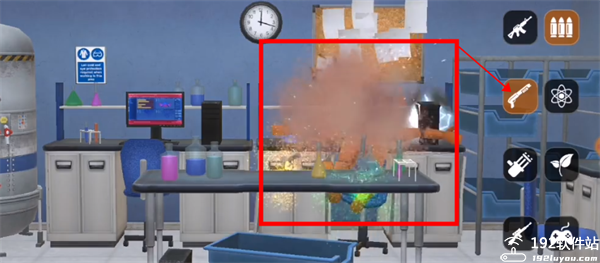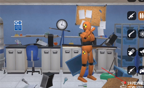 2、开始之后使用右侧的武器对其中的人物和物品进行破坏