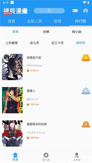 3、排行榜,分为男频、女频,包括上升最快,以及近一周、近三十天和总榜单,都是大家选择的作品,值得信赖。