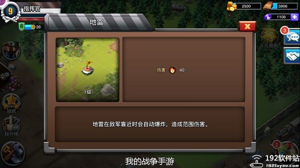 5级时可以放置6个地雷,地雷在敌军靠近时会自动爆炸,造成范围伤害。
