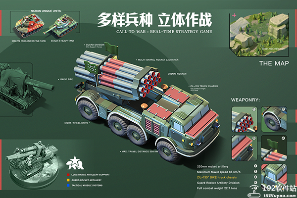 作为喀秋莎火箭炮的发展型号,它更加强大。能在极短的时间内向敌军阵地倾泻十余发220毫米火箭弹,瞬间造成毁灭性的打击。