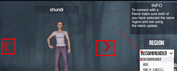3、这是玩家可以点击左右按键来切换角色形象,右下角是游戏服务器选择