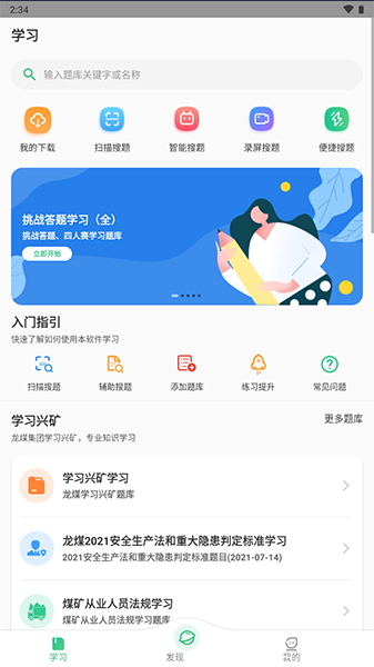 1、首页为软件的学习模块,这里的主要内容有扫描搜题和智能搜题等;