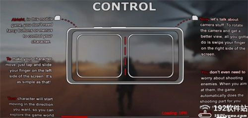 2、点开始游戏后会有操作介绍,左侧移动,右侧调整视角和攻击,拖动就是调整视角,点击就是射击;