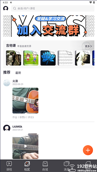 3、社区模块可以看到很多小伙伴分享的吉他演奏视频;