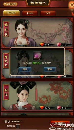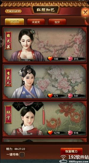 2、红颜知己是后宫玩法,可以收集美人,并且能提升战力。