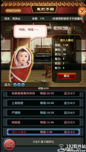 4、可以和红颜知己生娃哦,并且也能增加战力,在游戏中体验一段古代权贵人生。
