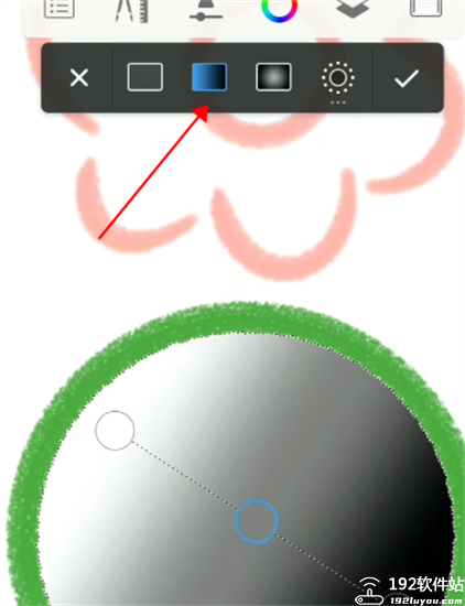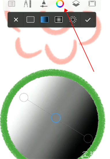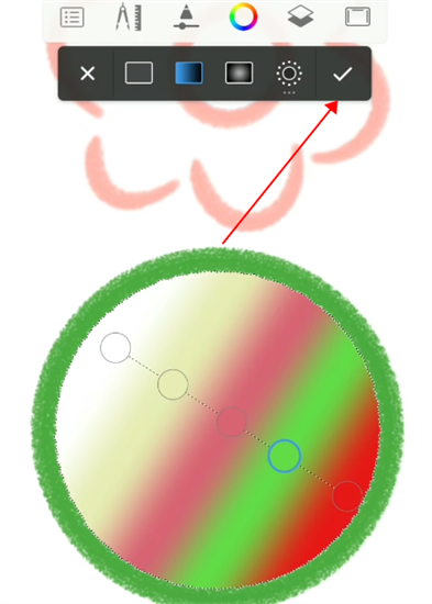 5、回到绘画界面就能看见渐变完成后的效果,点右上角确定按键就可以进行保存。