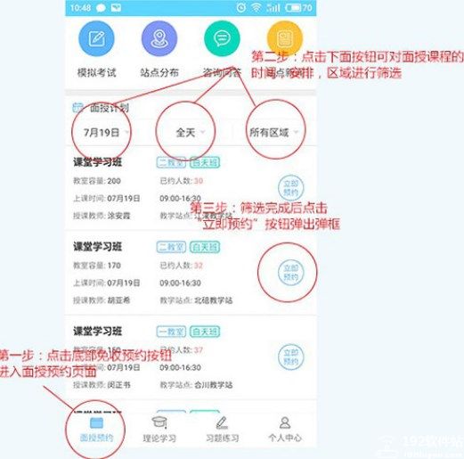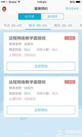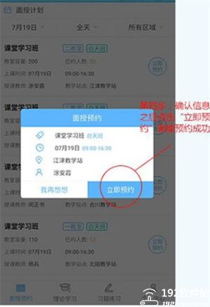 1、软件的第一个功能就是面授,我们选择它,然后根据图示来安排预约;