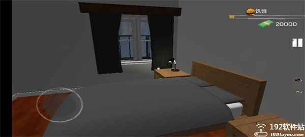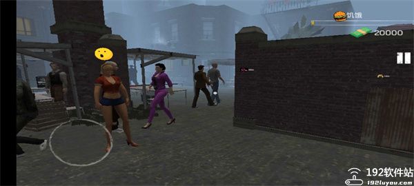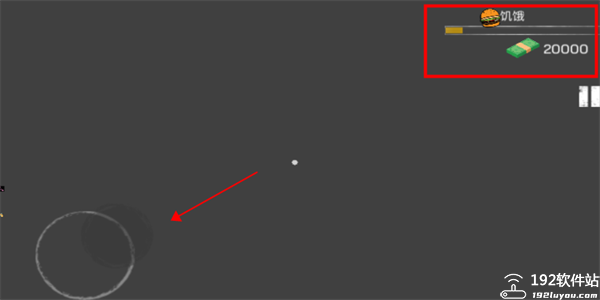 3、进入游戏移动摇杆可控制角色行动,右侧会显示当前所剩资金以及人物饥饿值