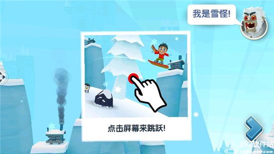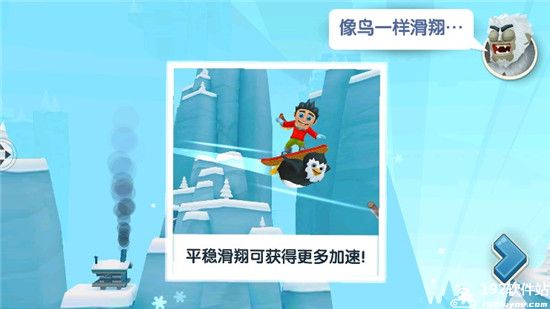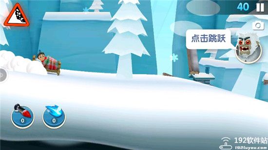 5、雪崩了,滑雪开始,遇到前方的障碍物记得跳跃,还可以使用一些滑雪技巧哦。