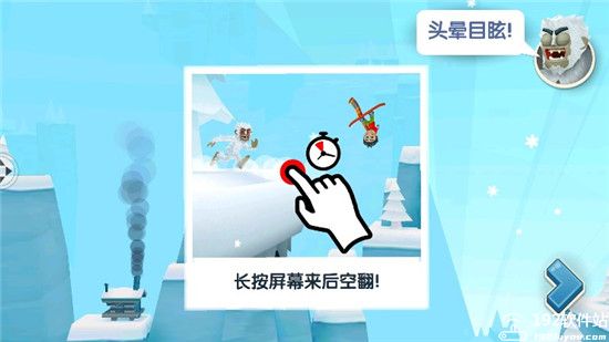 1、在滑雪过程中,一些陡峭的的地段和沿途的陷阱会给玩家带来一定干扰,小心地越过它们,可以滑出更精彩的姿势。