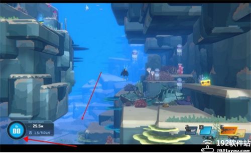 1、进入地图后,我们向右游动,一直到底右侧的终点;