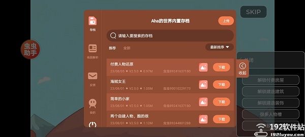 ps:内置mod菜单,提供全部付费房屋可用、可以建造全部建筑、全部建造装饰可用、很多人物槽、很多胶囊修改功能。aha世界全解锁版怎么玩