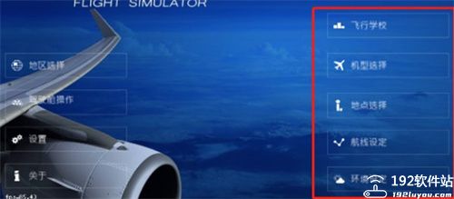 1、游戏界面,在右侧可以选择机型、地点等,确定好航线更好飞行;