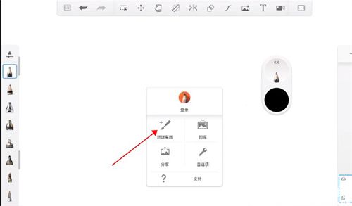 2、点击屏幕就可以新建草图,从图库中导入图片等;