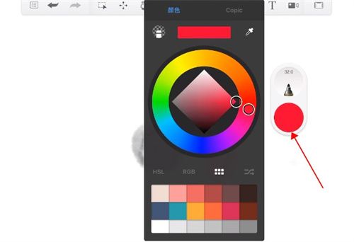 3、悬浮在画板上的这个按键可以调整颜色,很方便;