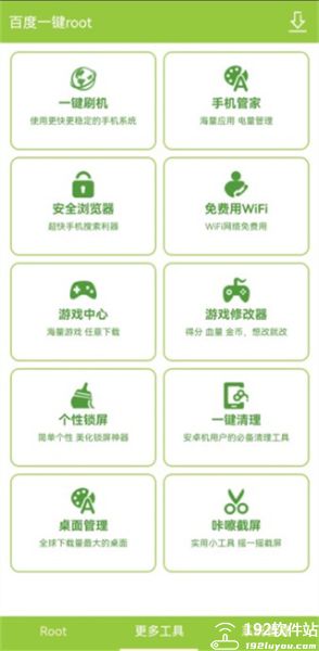 百度一键root的出现将让你摆脱这一困扰。如此大平台制作的root权限获取工具,相信能让小伙伴们放心吧?软件支持的安卓机型很多,主流机型基本包含在内。获取root权限的操作也不复杂,一键获取,用户仅需通过简单点击几个下一步即可完成。值得一提的是,百度一键root除了获取root权限这一项功能外,还支持,安全防漏洞功能和软件管理、卸载功能。