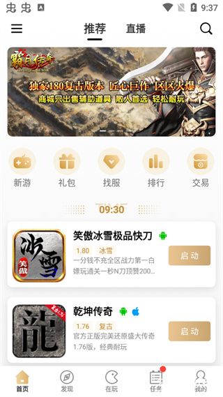 996传奇盒子最新版和它的名字一样,就是为玩家们专门提供传奇主题游戏的。所以对于喜欢各类传奇游戏的小伙伴们来说,你也不用到处寻找传奇游戏资源,来这就对了。首页有新游、礼包和排名等板块;发现板块推出的也是当前好评较高的游戏;在添加了一些游戏后,后续进入在玩板块直接进入即可。当然,如果想要直接体验平台的游戏是是需要玩家们进行登录的。平台有一些游戏仅支持安卓端,如果你有使用苹果手机的小伙伴,想要和他一同体验游戏的话,只能选择同时支持安卓和苹果系统的版本。
