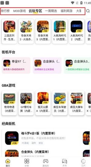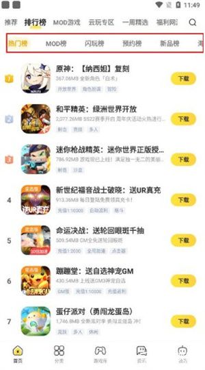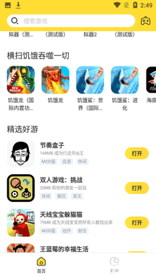 1、首页这里有几个游戏板块,mod游戏就是修改版本,云玩能让您在手机上玩