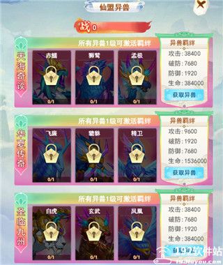 4、可选的坐骑、异兽、法宝类型多种多样。