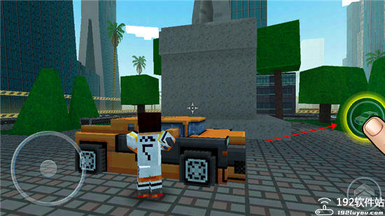 5、靠近游戏载具附近会显示汽车图标,点击即可进入载具,再次点击即可下车。