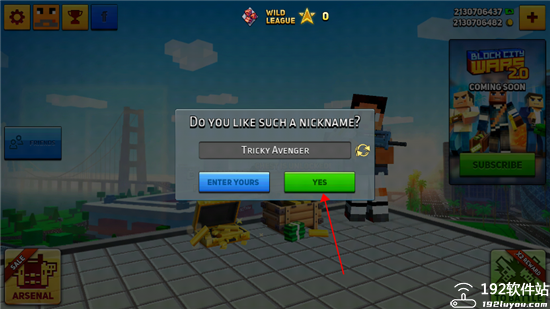 6、完成新手教程后,弹出改名菜单,更改完名称点击yes绿色按钮完成昵称更改。