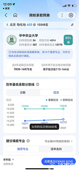 3、完全根据学生分数、位次,以及专业目标进行填报推荐;