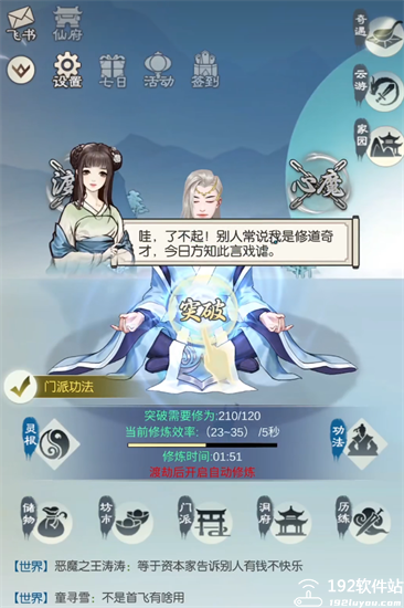 4、开局后会自动进入修炼状态,经验值足够后就可以进行突破,持续提升你的修为成为一方巨擎。