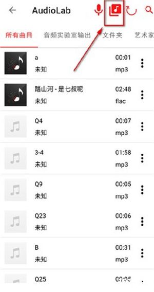 2、然后在界面中点击右上角的音符图标;
