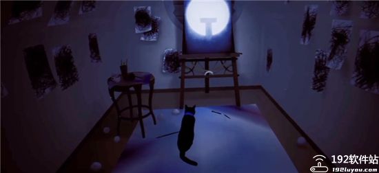 2、进入客厅后,跟随黑猫的脚步一直往前走。