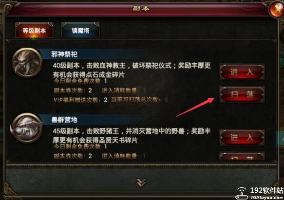 3、想获得更多的材料和资源就参与邪神祭祀副本,消耗副本券即可进入